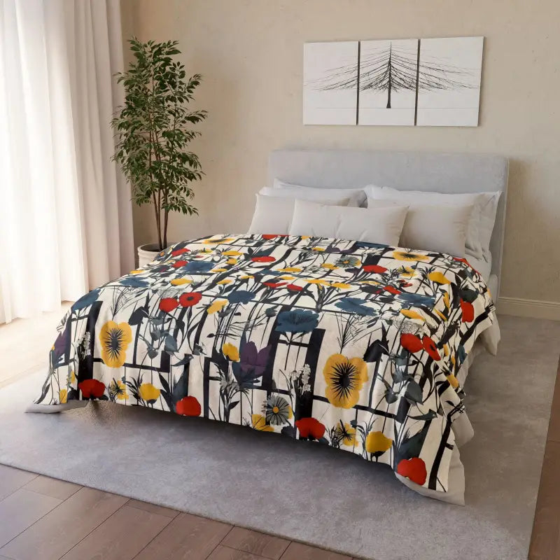 Abstract Wildflowers Soft Polyester Blanket - Cozy Style - DipaliZ