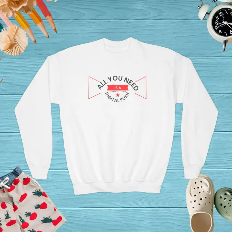 Versatility is key, and this sweatshirt can be styled in countless ways. Pair it with jeans for a casual look, or throw it over a t-shirt and shorts during cooler evenings. It's perfect for layering, offering a cozy additional layer without adding bulk. Whether dressing up or down, this youth crewneck makes fashion choices a breeze.