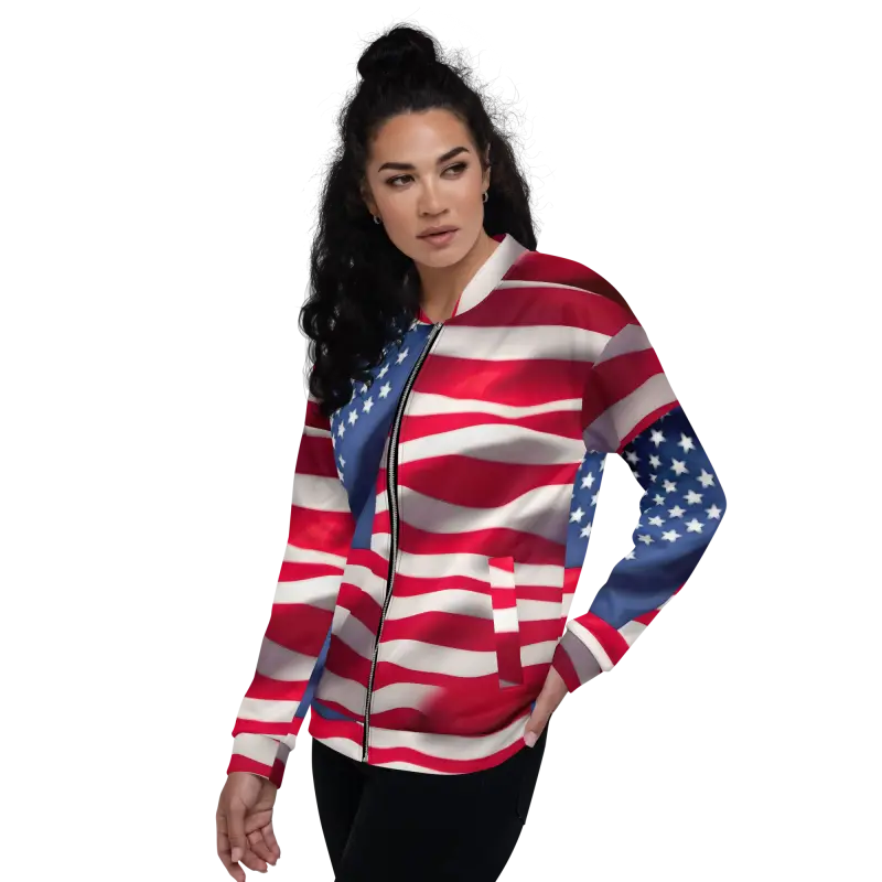 Unisex Bomber Jacket American Flag Patriotic Style - DipaliZ