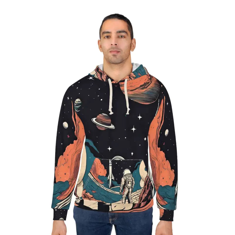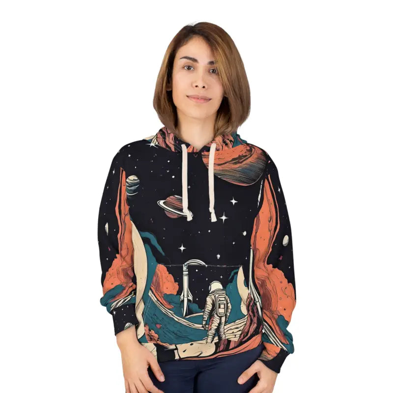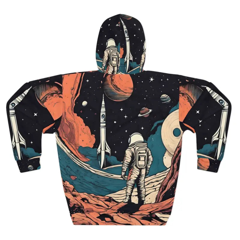 Print: Astronaut in space meets rocket brilliance, designed with cosmic energy to elevate every unisex pullover hoodie and women’s fashion vibe lift your look