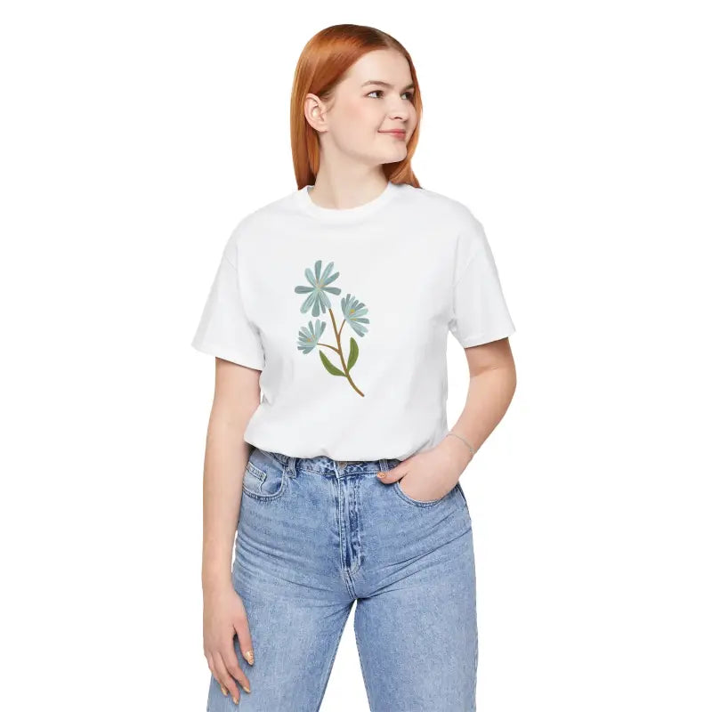 Unleash your inner fashionista with the Rock Your Style: Blue Flower Jersey Short Sleeve Tee—a perfect blend of comfort and charm that promises to elevate your style game to a whole new level. Sporting this tee is like walking through a serene garden, thanks to its mesmerizing blue flower design that brings a touch of nature's beauty to your everyday look. Made with ultra-soft cotton, it wraps you in cozy bliss while flaunting a chic and casual vibe. This is the jersey short sleeve tee you'll find yourself reaching for whenever you want to combine style with effortless elegance.