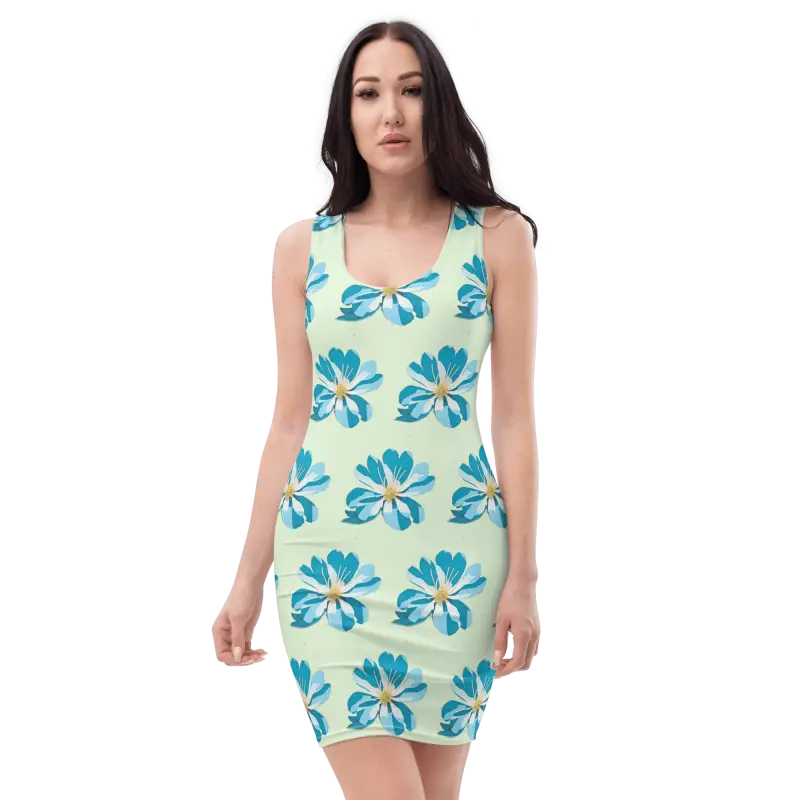 Imagine yourself striding into any event wrapped in an intricate display of blue flowers design, oozing sophistication and timeless charm. This dress is not only visually captivating; it's also crafted to fit seamlessly into various occasions. Whether it's a garden party, a beachside gathering, or a casual lunch date, this dress ensures you become the center of attention without effort.