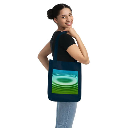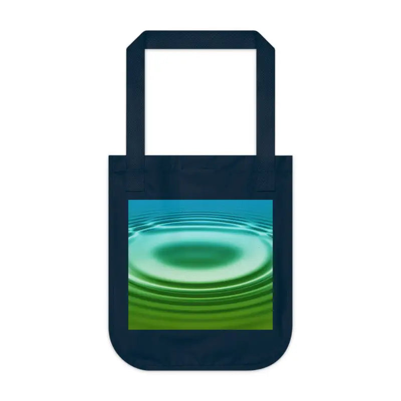 Print: Artistic bluish green ripples create a bold, eye-catching look on natural canvas.
