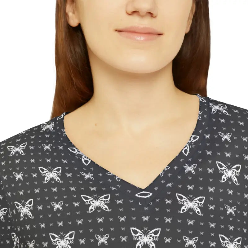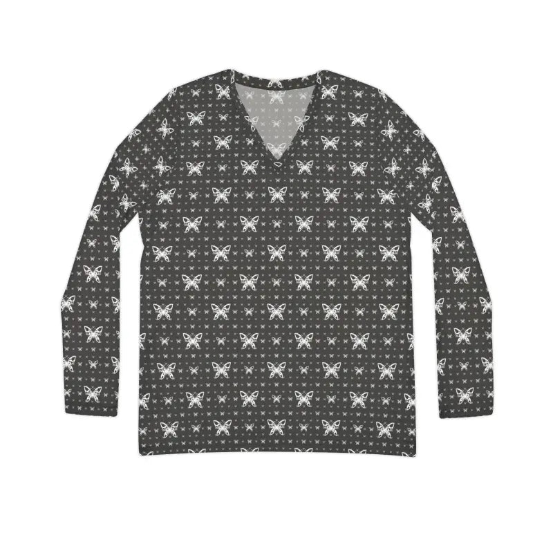 Step up your wardrobe with this icon of long sleeve fashion that combines a chic sleeve v neck cut with a dreamy butterflies pattern. Donât waitâmake it yours now and embrace a new era of effortless womenâs fashion that lets you shine every day!