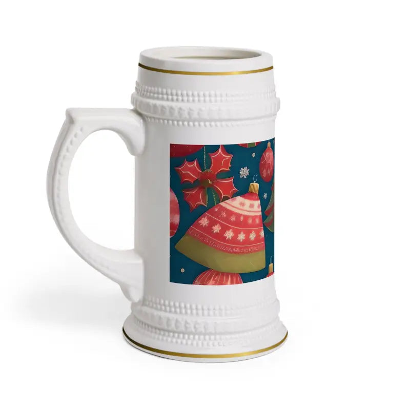Christmas, Beer Stein Mug. Perfect for creating a more authentic drinking experience, whether in a bar or at home. These 22oz white stein mugs are made from 100% ceramic. The mugs are treated with an ORCA coating that makes sure your original designs are printed in vibrant colors and high resolution.