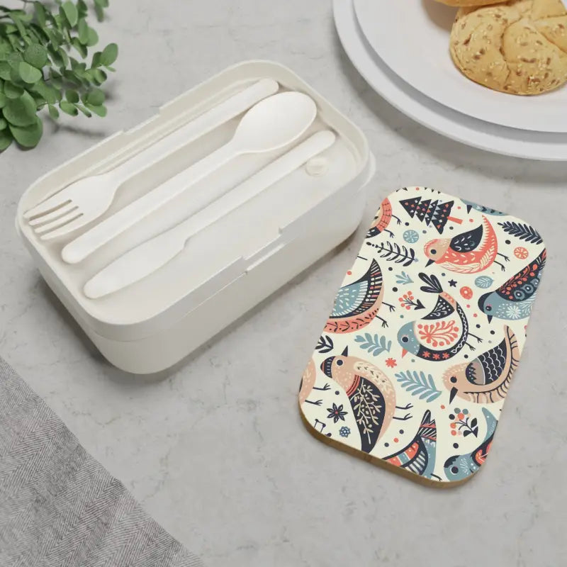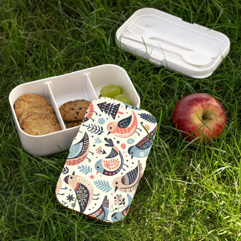 Colorful birds, Bento Lunch Box, BPA free. Indulge in the convenience of enjoying fresh, healthy meals on your terms with our awesome bento-style lunchbox. Whether you're at work, school, or out for a picnic, this versatile lunch container is designed to enhance your dining experience. The smart compartments within the lunchbox allow you to keep your various food items separate, ensuring freshness and preventing the mingling of flavors.