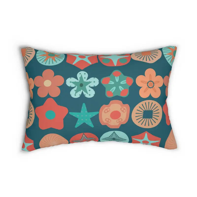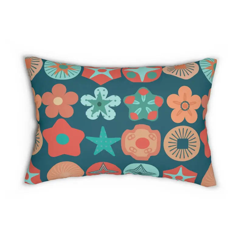Colorful geometric pattern, Spun Polyester Lumbar Pillow. Add this beautiful spun-polyester lumbar pillow to your home decor pieces today. It comes with a stuffing pillow included. The casing is made of a spun polyester fabric that is inherently mildew and water-resistant. You can place your design on both sides or have a different design on each side. It has a hidden beige zipper to maintain a finished and stylish look.