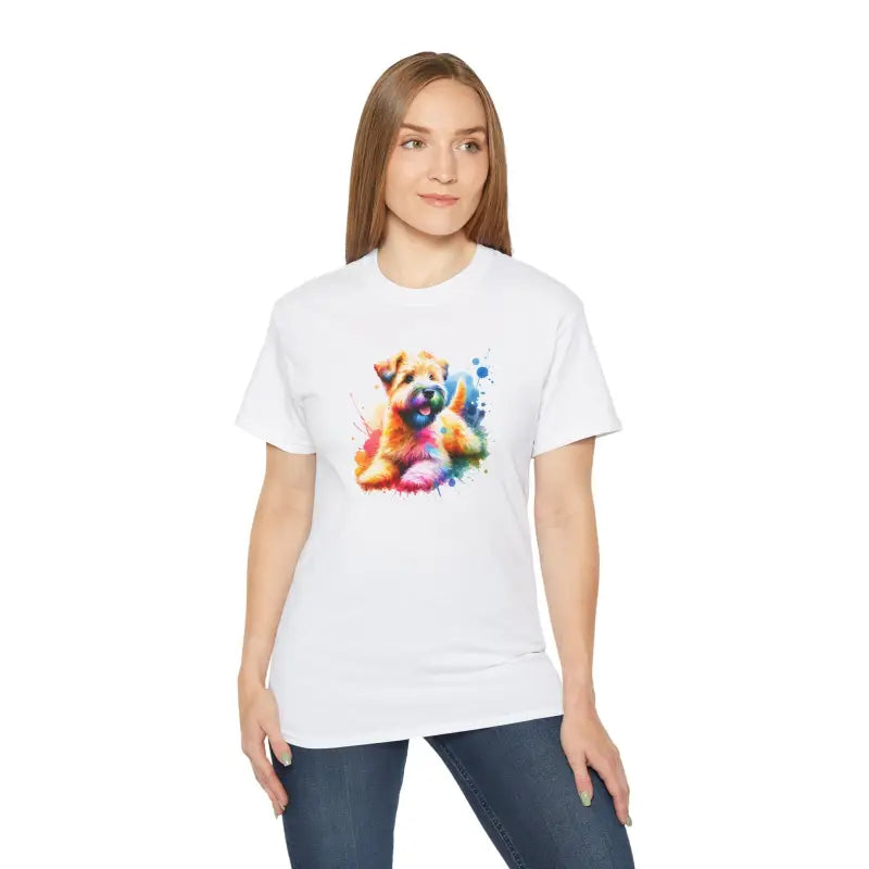 Print: Joyful and energetic Wheaten Terrier artwork captures the essence of playful pups, making this tee a standout pick for canine fans.
