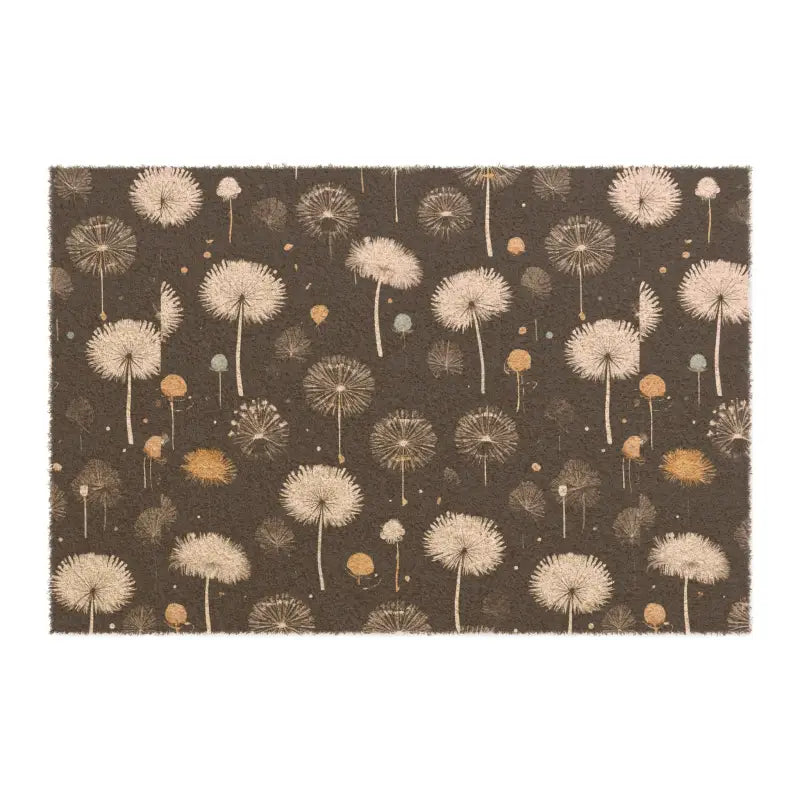 Dandelions, Doormat. Meet the perfect welcoming doormat with beautiful prints. Each mat comes in a 24" x 16" size and is made with Grade A tufted coir coconut fiber, making it perfect for outdoor use. All mats feature black vinyl backing for increased stability.