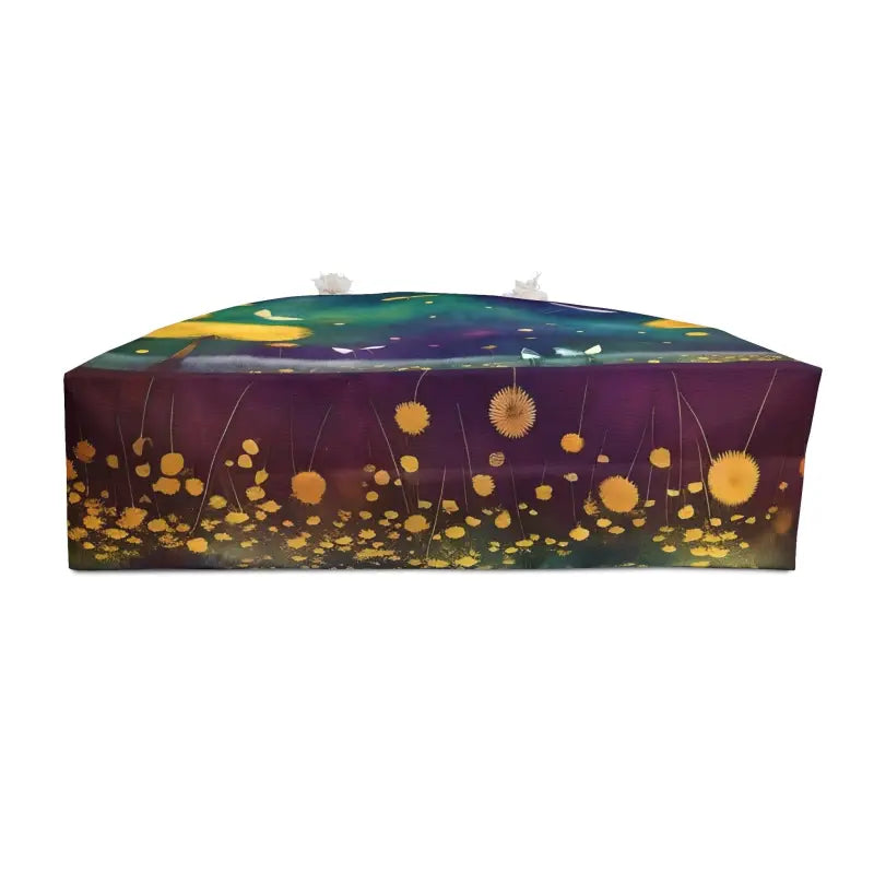Feel the breeze of weekend freedom as you sling on this vibrant polyester weekender bag and let every moment bloom with color and possibility. Imagine stepping off the train, the dandelions bag catching eyes as lavender petals and sky-blue tufts swirl around your plans for spontaneous adventures in the city or seaside escapes.