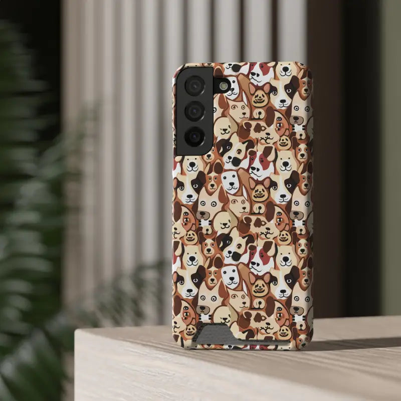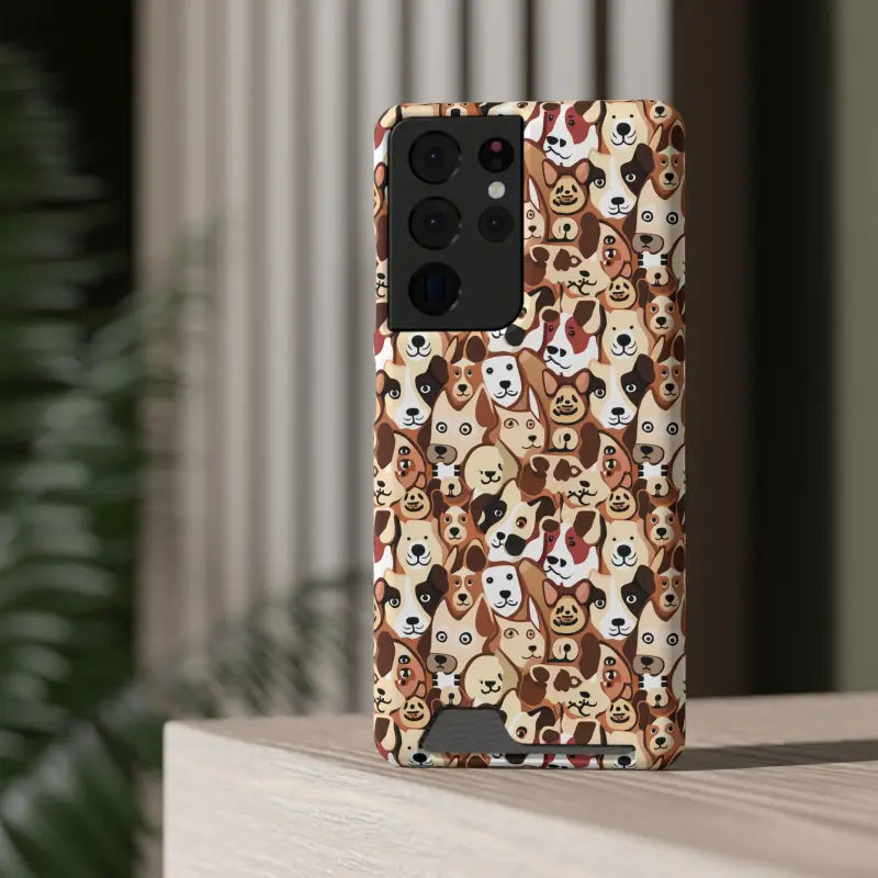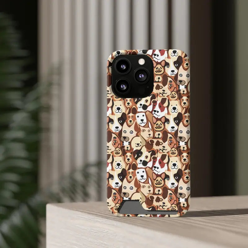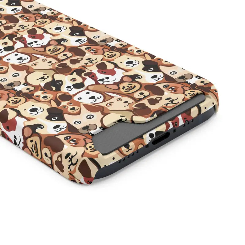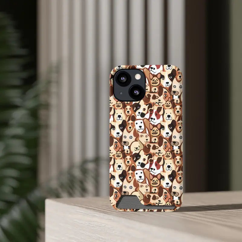 Impact Resistant Phone Case Card Holder with Dog Pattern - DipaliZ