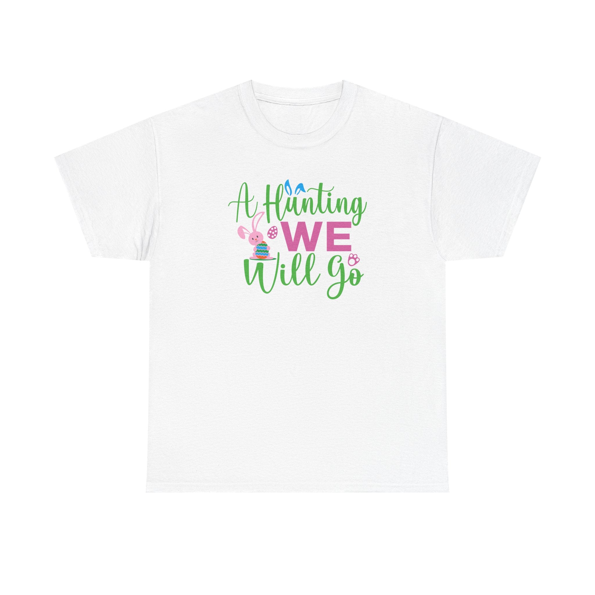 Easter hunting, Unisex Heavy Cotton Tee. The unisex heavy cotton tee is the basic staple of any wardrobe. It is the foundation upon which casual fashion grows. The specially spun fibers provide a smooth surface for premium printing vividity and sharpness. No side seams mean there are no itchy interruptions under the arms. The shoulders have tape for improved durability.