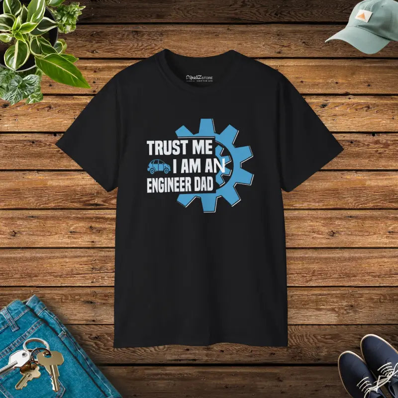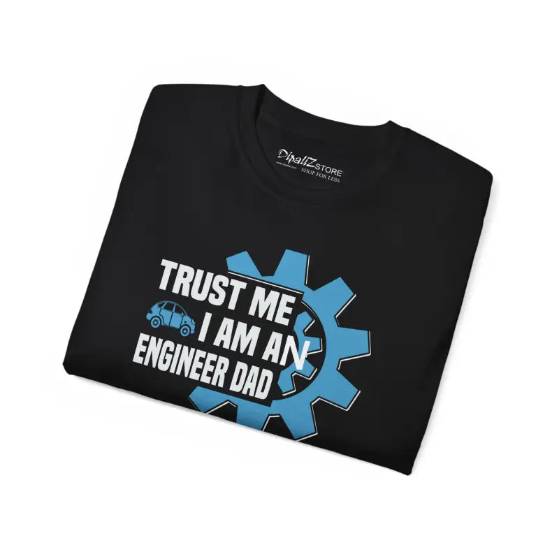 Print: Trust me I am an Engineer Dad in bold, witty lettering that gets smiles wherever you go.