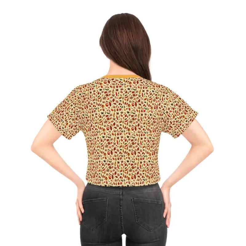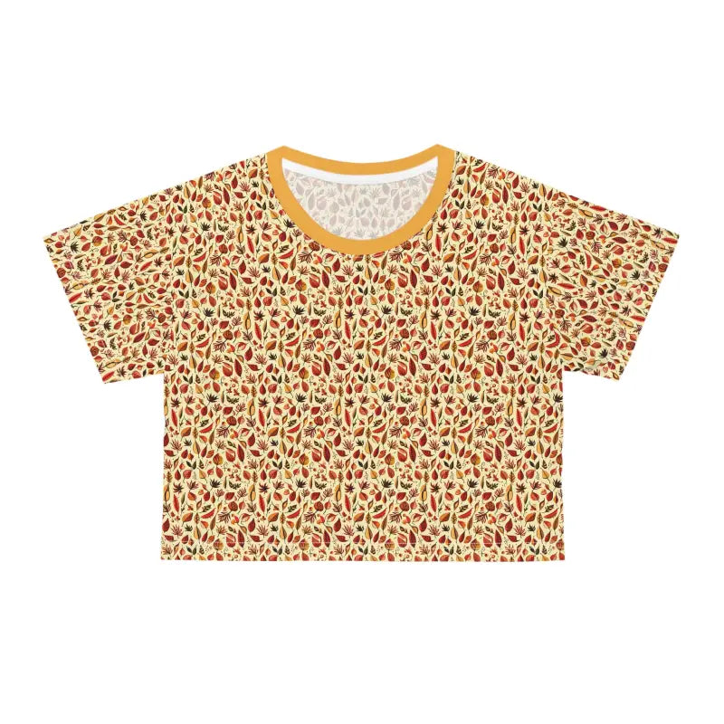 Introducing an irresistibly vibrant clothing piece that's all about turning heads and embracing the glorious shades of autumn—the Fall Leaves Pattern on Yellow AOP Crop Tee. Infused with a stunning design, this playful crop tee showcases a mesmerizing autumn leaves pattern set against a lively yellow backdrop. It's more than just a staple for your wardrobe; it's a must-have statement piece that promises both flair and comfort.
