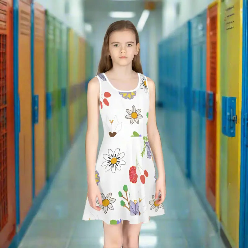 - This floral girls’ sleeveless design is crafted to guarantee playful comfort and trendy vibes for any sunny occasion.