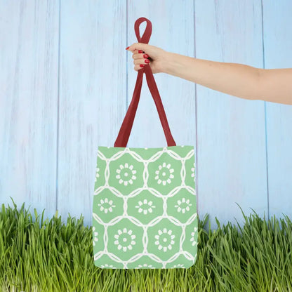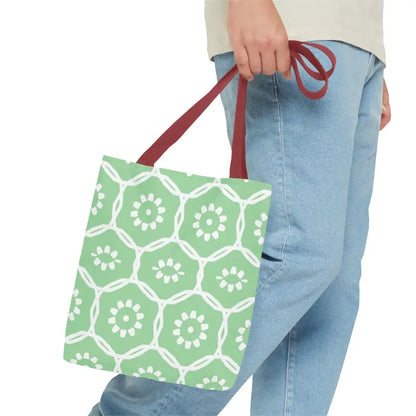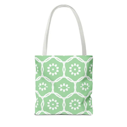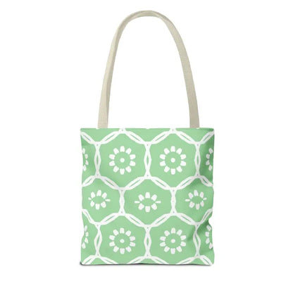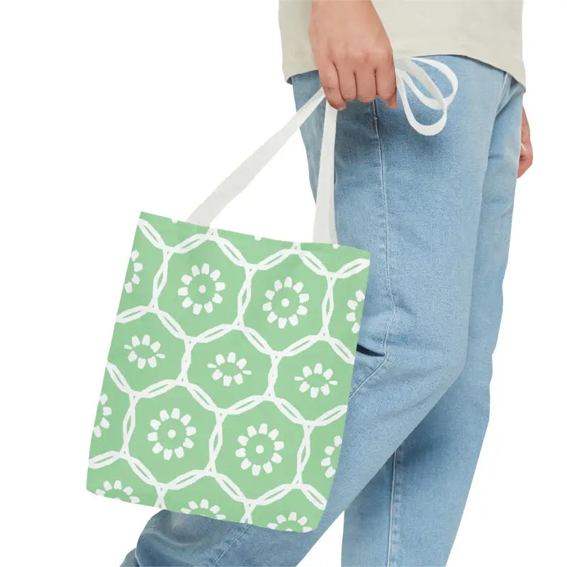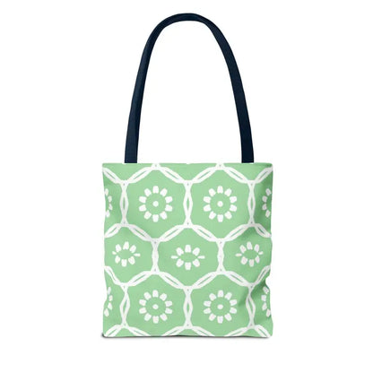 Why blend in when you can stand out? Bring home this green tote bag with a floral pattern and freshen up your look with comfort, durability, and modern flair. Grab yours and make every day a little brighter!