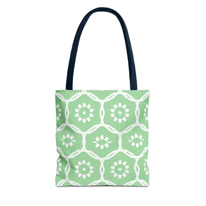 - Makes every day pop with color and style thanks to its dynamic green tote bag design and lively all-over floral pattern.
