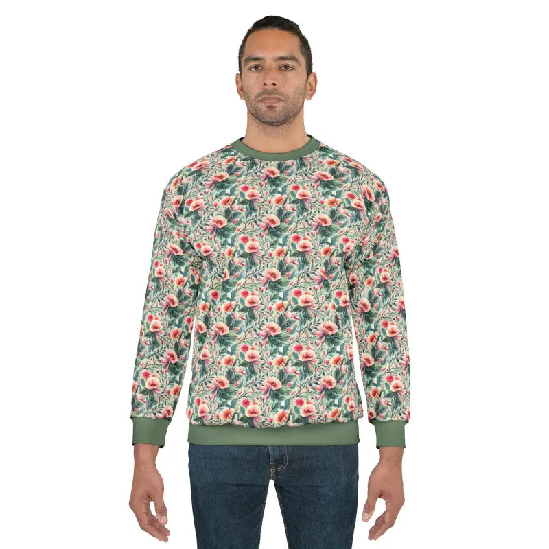 Step up your wardrobe with this must-have unisex sweatshirt that fuses attention-grabbing floral pattern style, timeless design, and a comfortable polyester cotton fabric. Upgrade your look and seize the dayโgrab yours now and experience a new level of fashionable comfort!