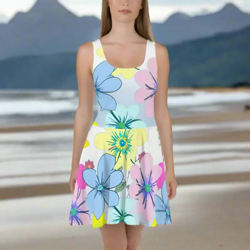 Floral Skater Dress with Flared Skirt for Bold Women's Fashion - DipaliZ