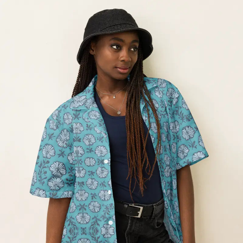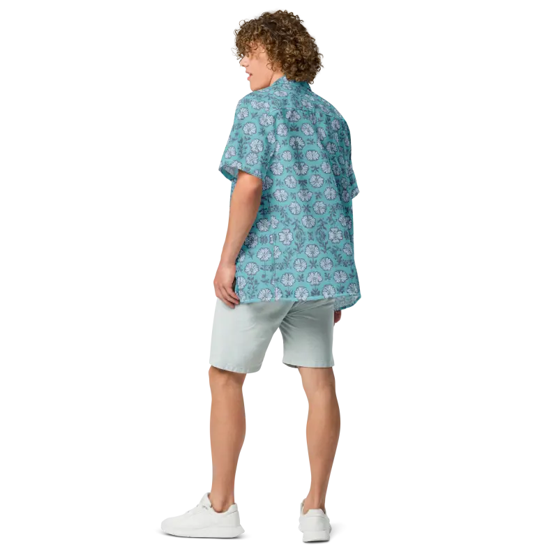 Feel those sunny vibes with this trendy button shirt—bold floral prints, awesome comfort, and total versatility wrapped in a sustainable package. No more worrying about steamy days or fitting in at any event—your new favorite recycled polyester shirt will have you looking sharp whether you’re at a rooftop BBQ, hitting the beach, or just hanging out.