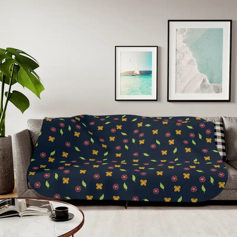 - Beautiful flowers and butterflies blanket print brings nature into your home while staying chic
