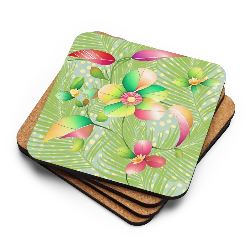 Heat Resistant Cork Back Coaster Set - Vibrant Flower Design - DipaliZ