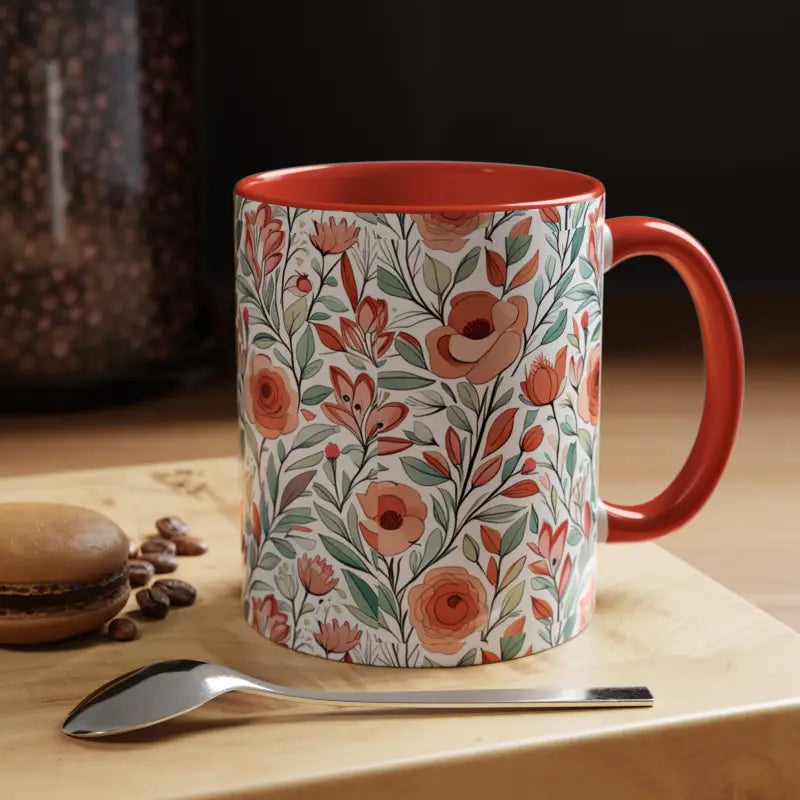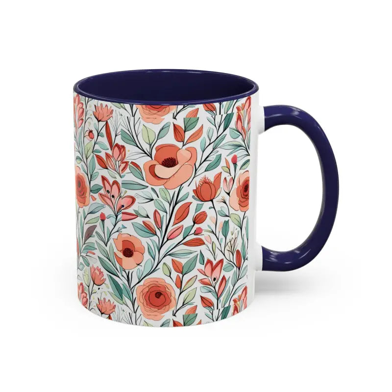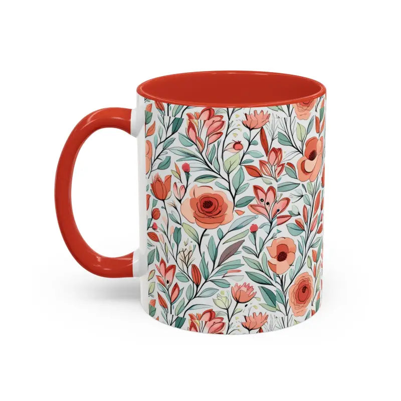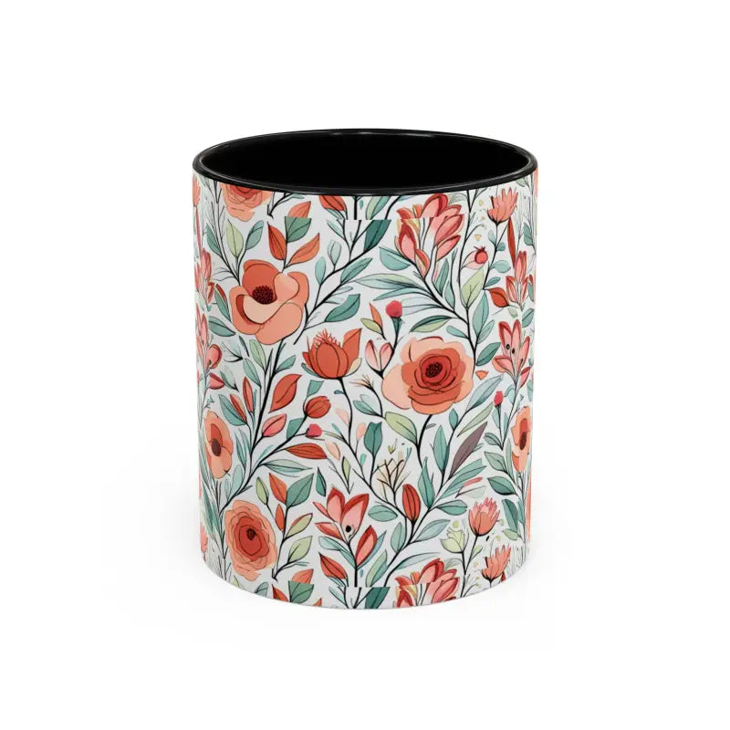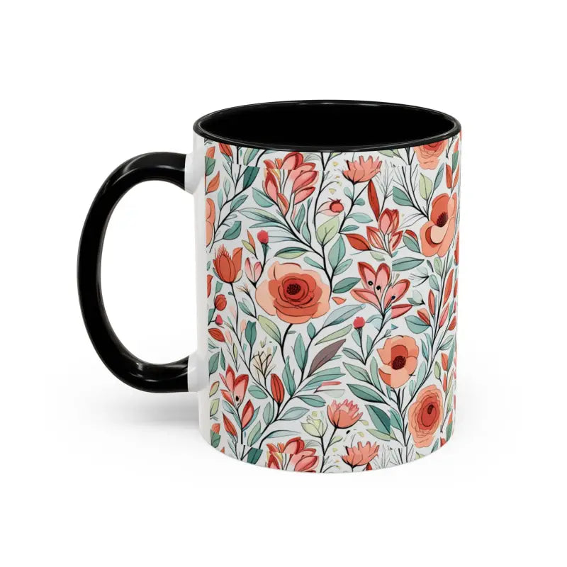 Flowers pattern, Accent Coffee Mug, 11oz. Add some color to your routine with this two-tone, accent coffee mug. This 11oz mug features an accented C-Handle that is comfortable to use, as well as an accented interior to add more contrast and character.