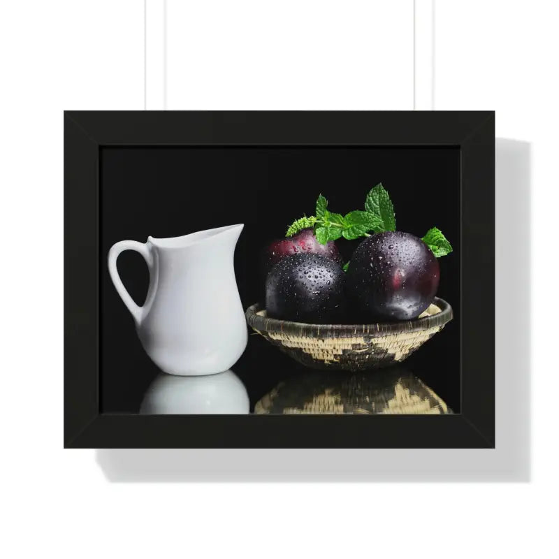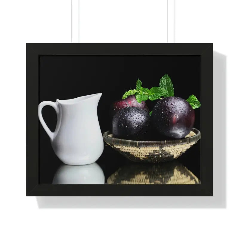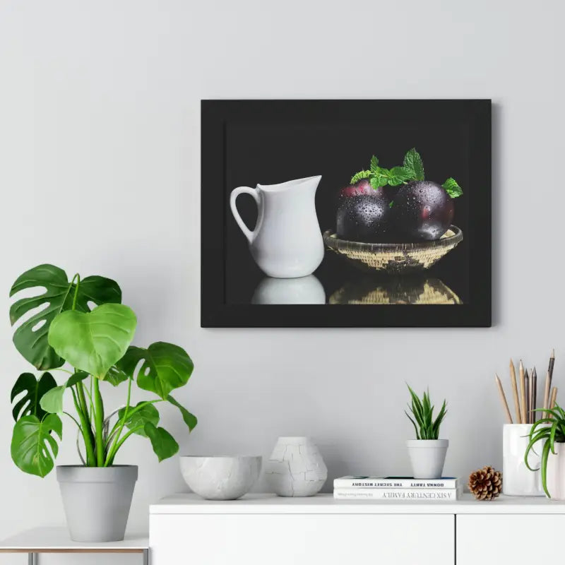 Premium-quality print mounted in a durable, sleek frame designed to last and to highlight the intensity of fresh plum fruit colors.