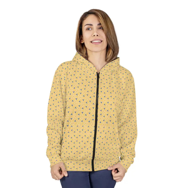 Level up your winter style game and stay toasty at every turn—step up with the unisex zip hoodie that brings bold geometrical pattern and unbeatable warmth all in one.