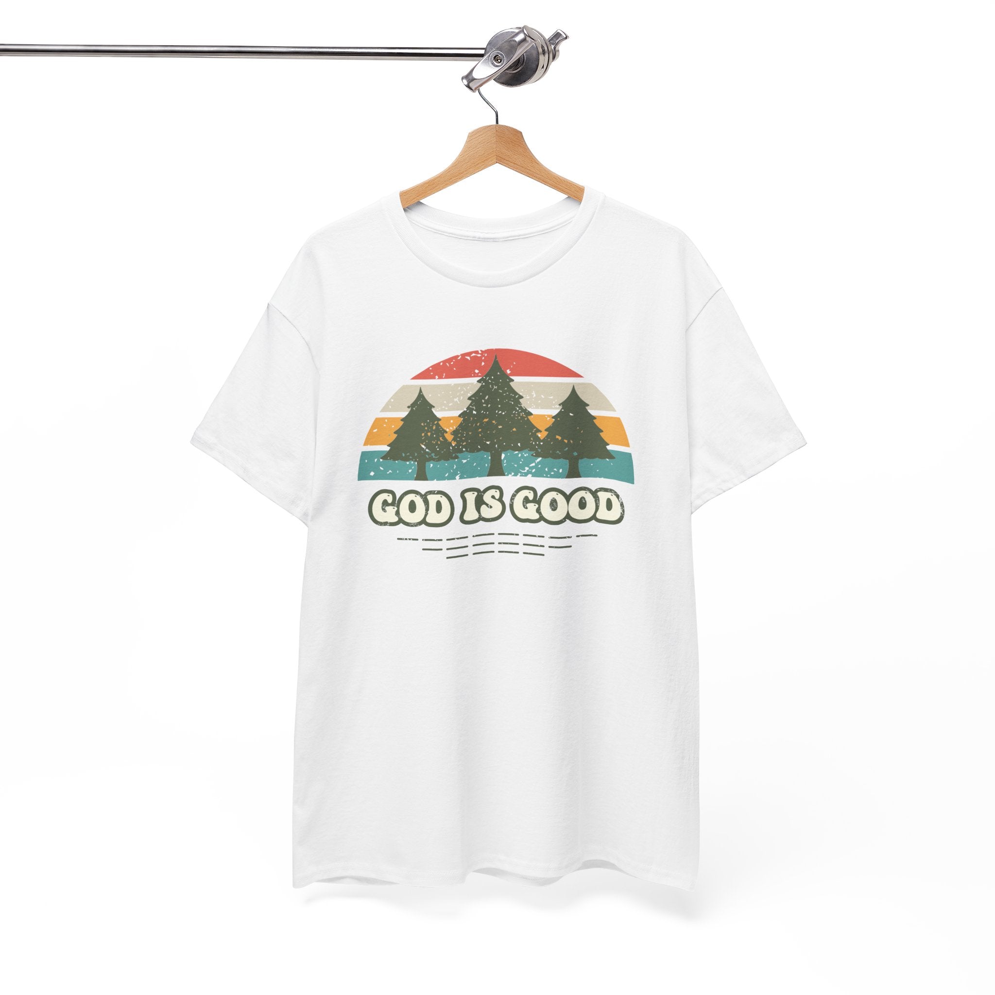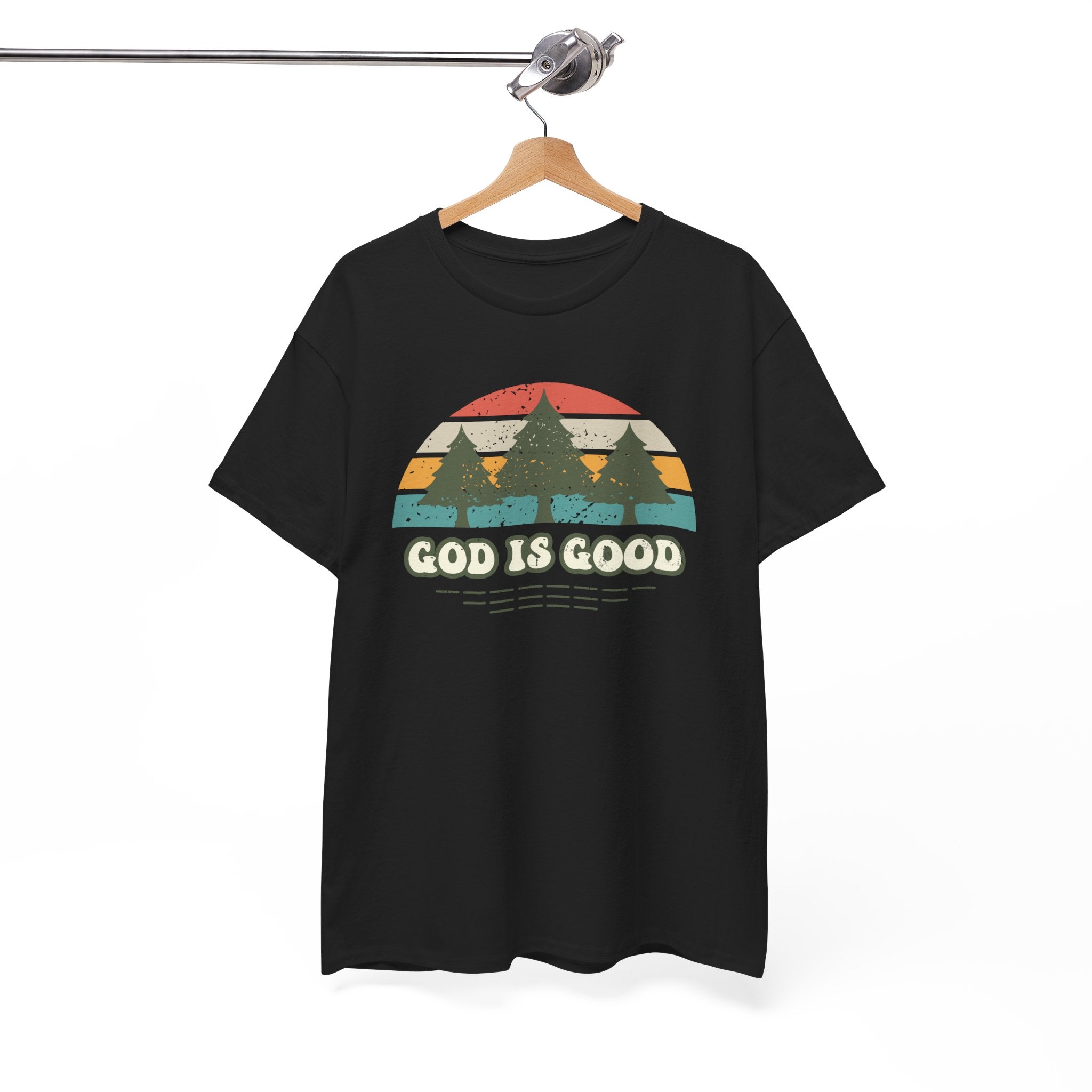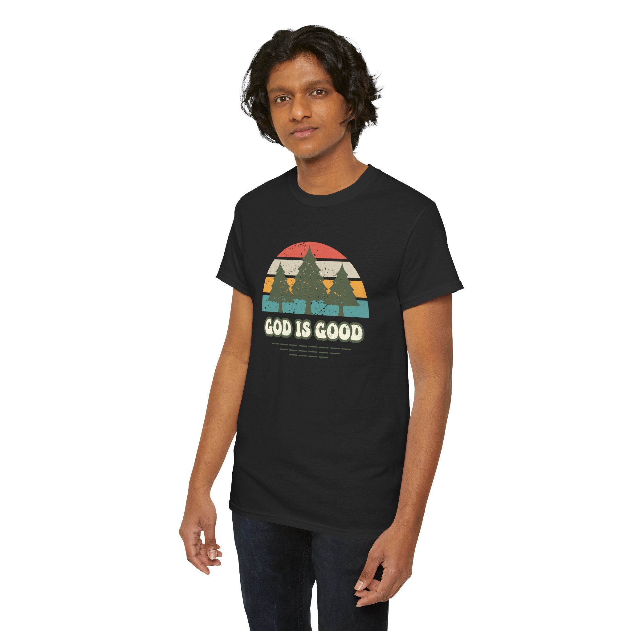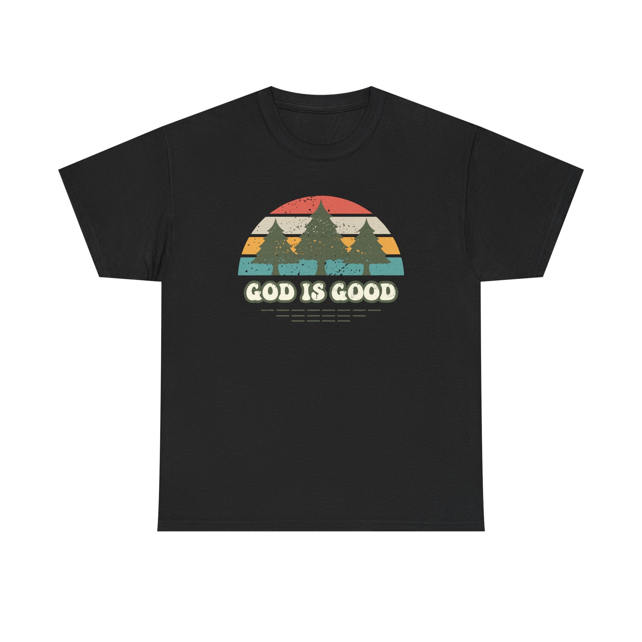 God is good, Unisex Heavy Cotton Tee. The unisex heavy cotton tee is the basic staple of any wardrobe. It is the foundation upon which casual fashion grows. The specially spun fibers provide a smooth surface for premium printing vividity and sharpness. No side seams mean there are no itchy interruptions under the arms. The shoulders have tape for improved durability.