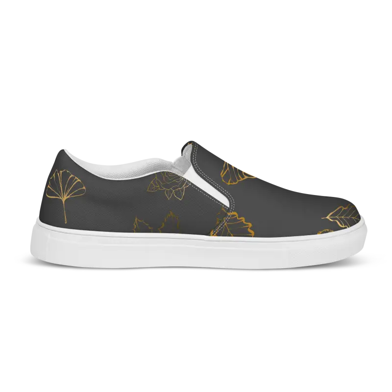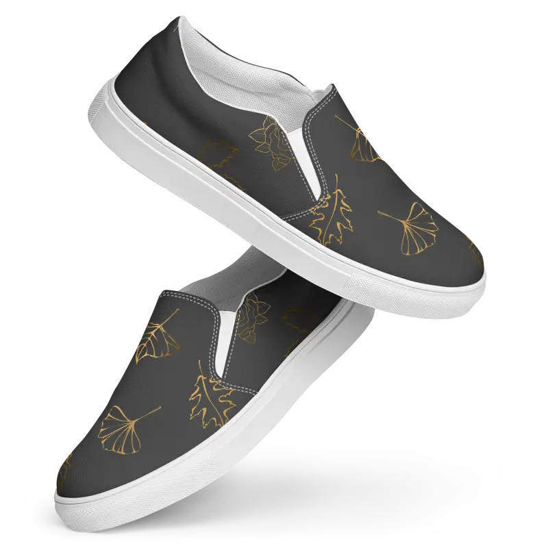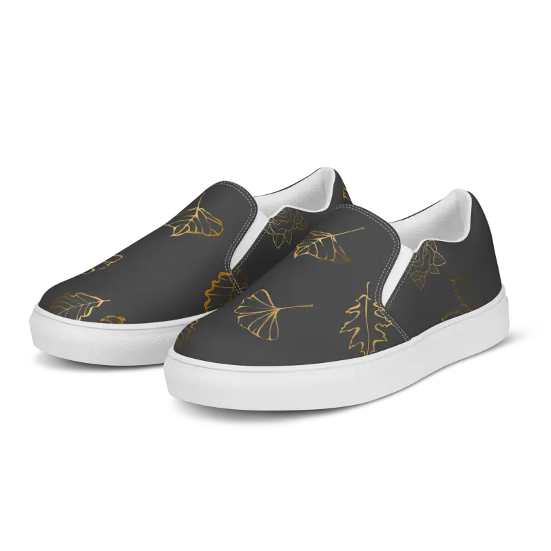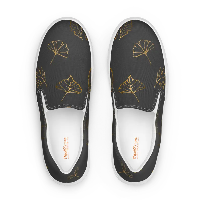 Canvas Shoes Women's Slip On Golden Leaves Comfort Style - DipaliZ