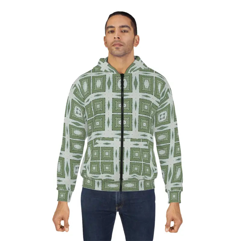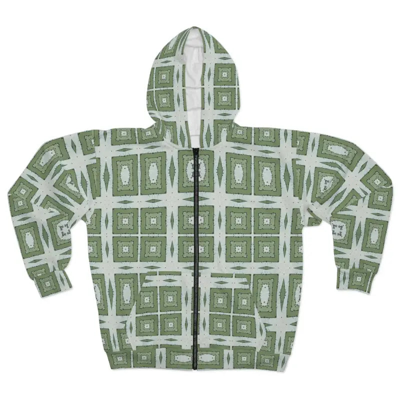 Zip Hoodie - Green Geometric Abstract Pattern - DipaliZ