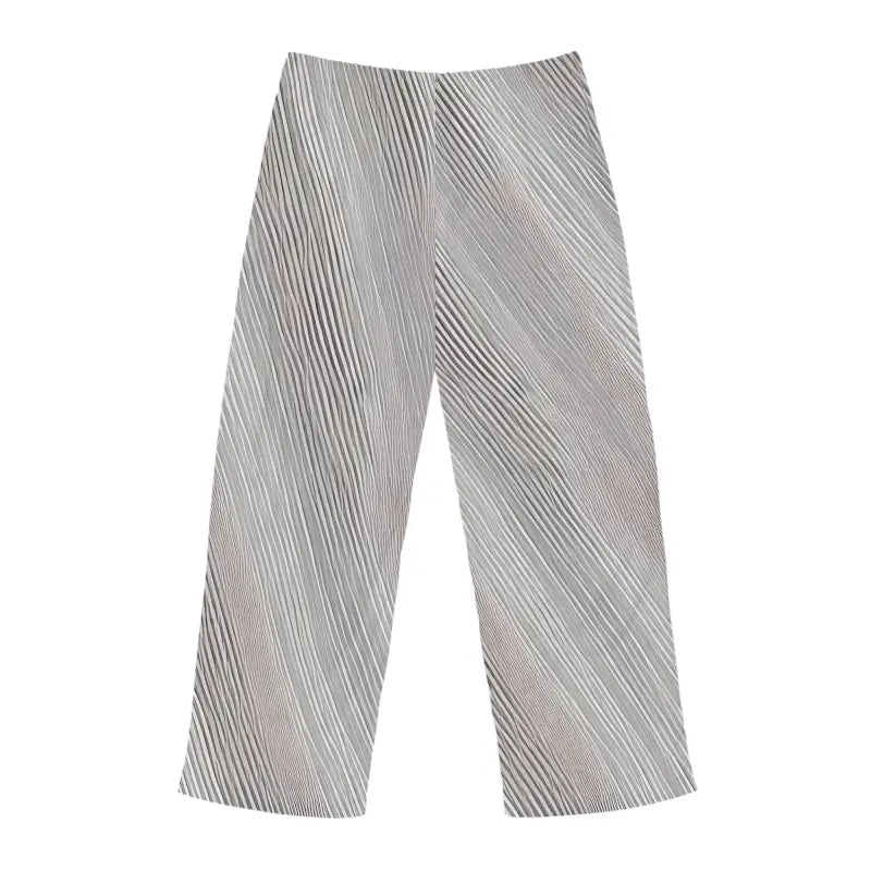 Print: All over white oblique stripes with hints of grey black, creating a bold yet sophisticated look for the modern woman.