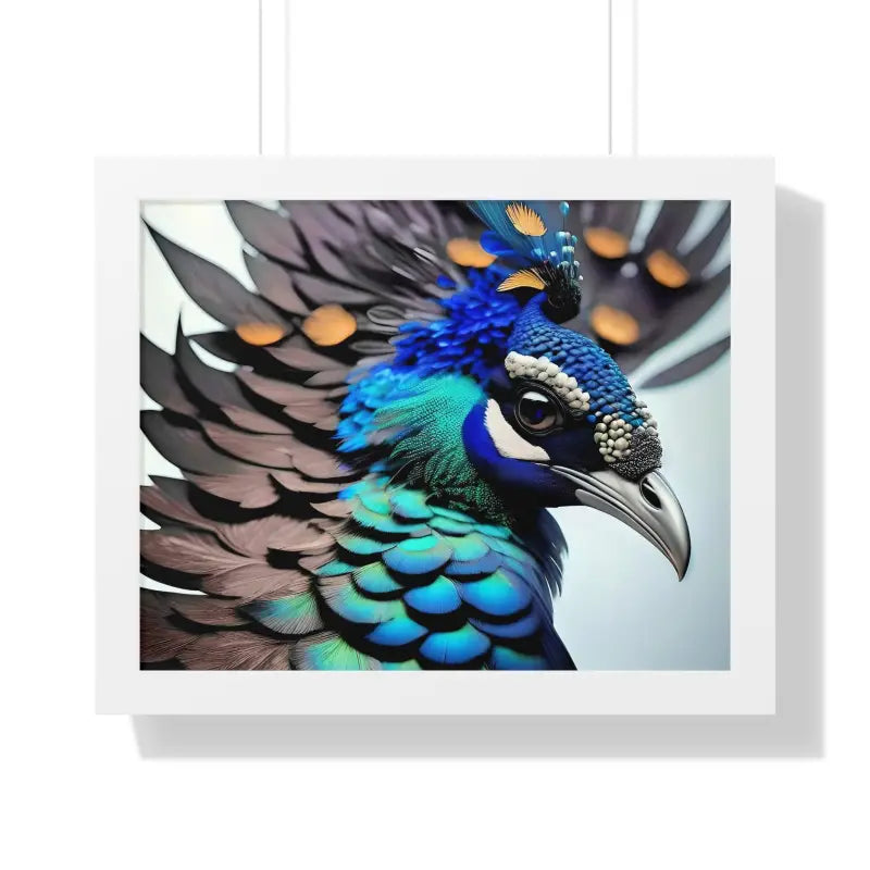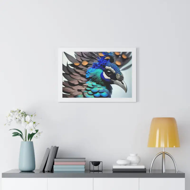 A Stunning Peacock Bird, Framed Horizontal Poster