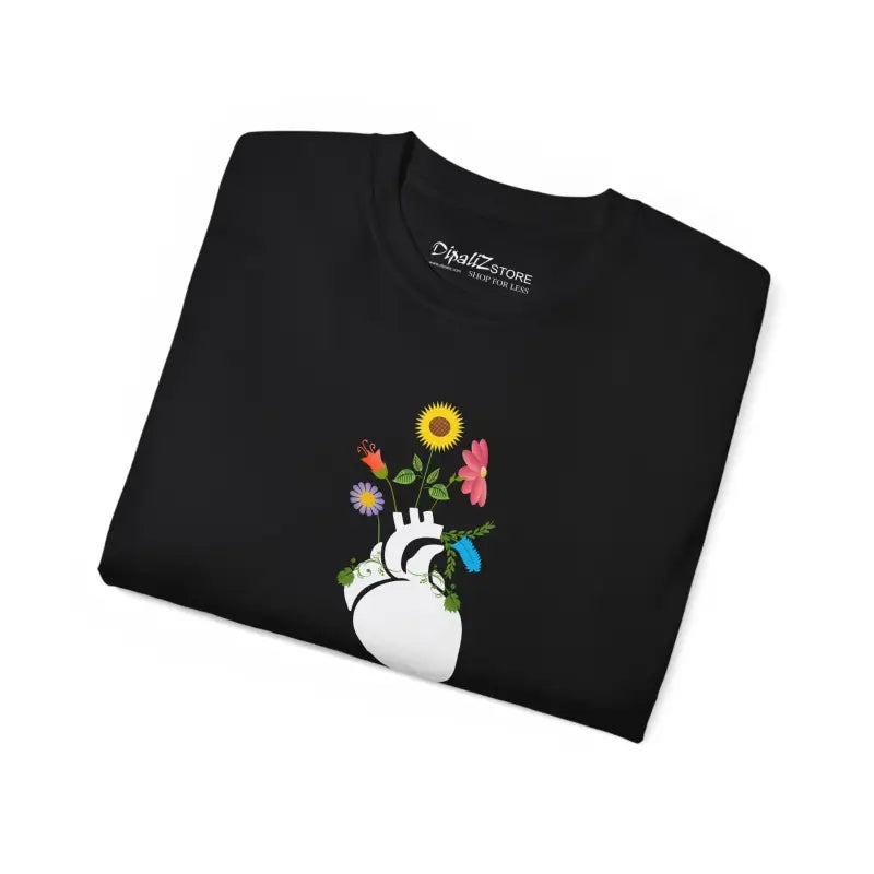 Ready to turn heads and express your vibe? Step up your style game with the Ultra Cotton Tee featuring a mesmerizing heart with flowers designāyour instant outfit upgrade for all occasions.