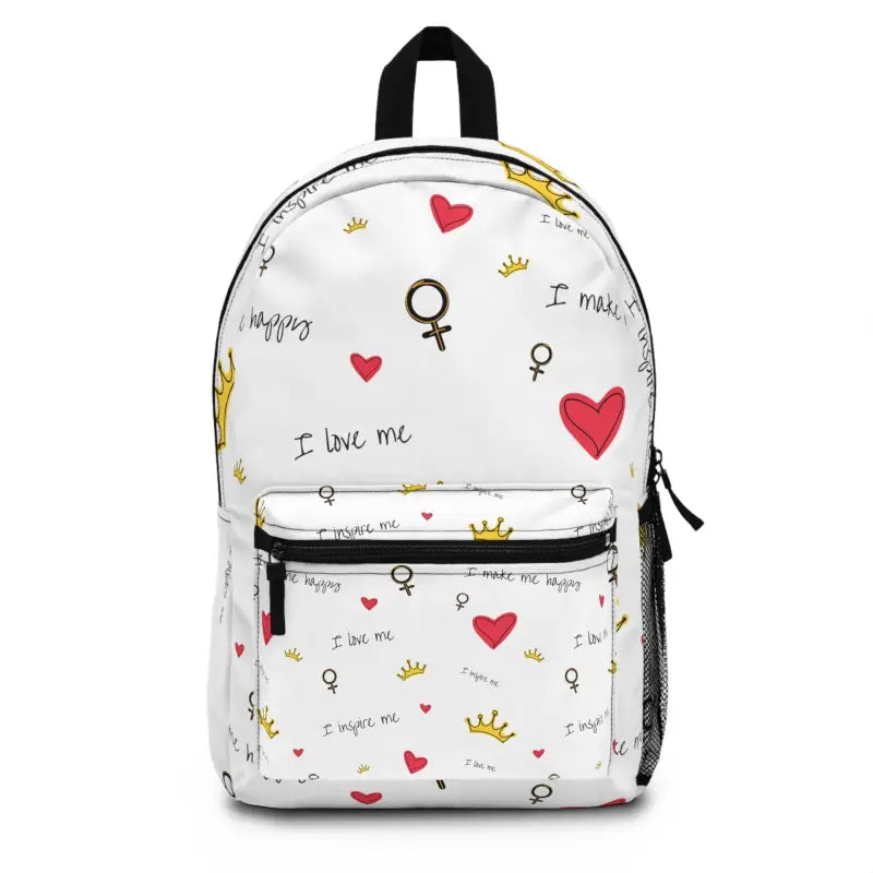 I love me, I inspire me, Backpack. Need ample space for all your essentials? Look no further than our roomy and durable backpack - it's got you covered! Crafted from spun polyester, this lightweight bag weighs just 1.3 lbs, striking the perfect balance between strength and portability. Throw it, stow it, or rest it on the seat next to you - this backpack can handle anything you throw its way, just like you on your adventures!