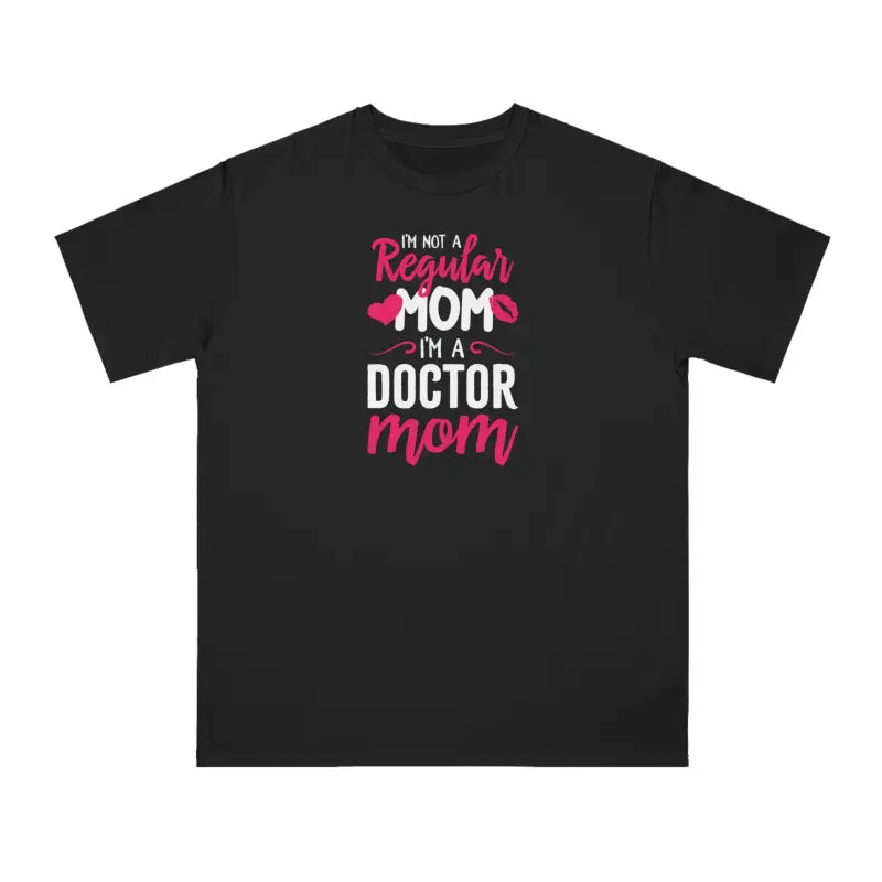 Bold text print says I'm not a regular Mom, I am a doctor Mom, giving off confident vibes with every wear.