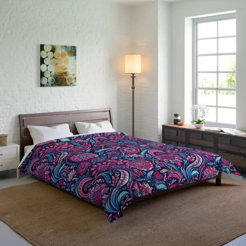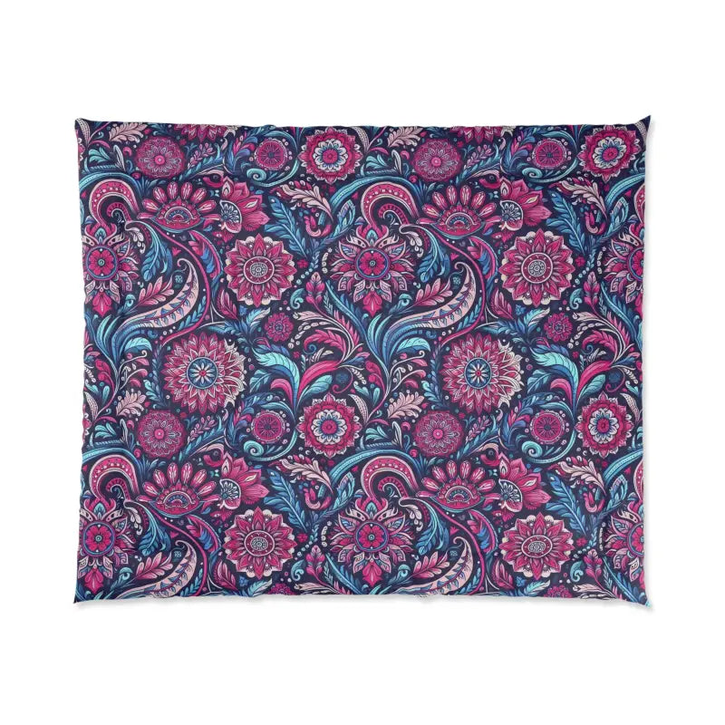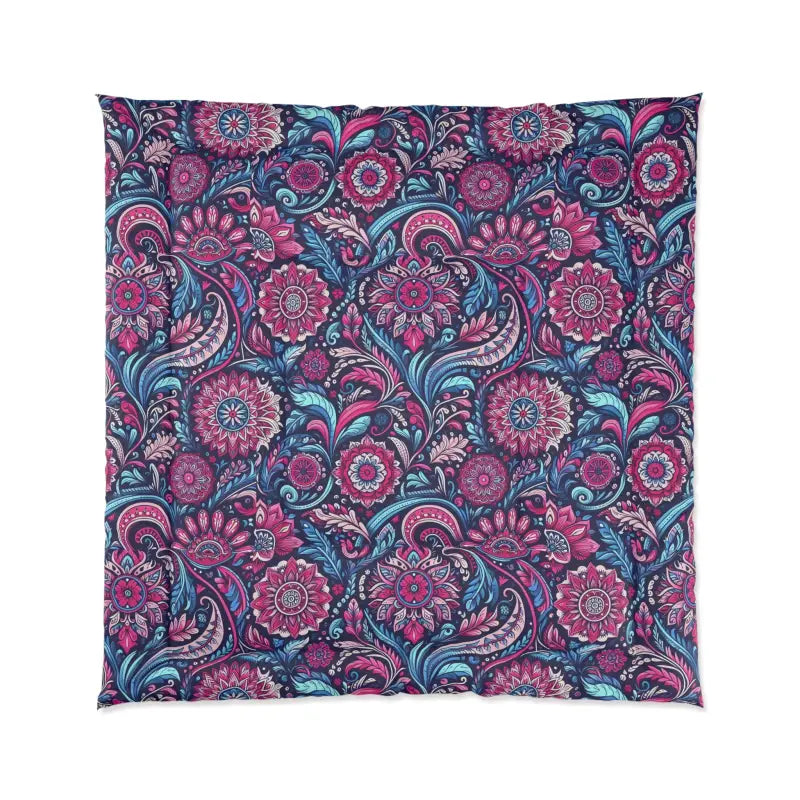 Indian Pattern Comforter Fuchsia Blue Ethnic Style DipaliZ
