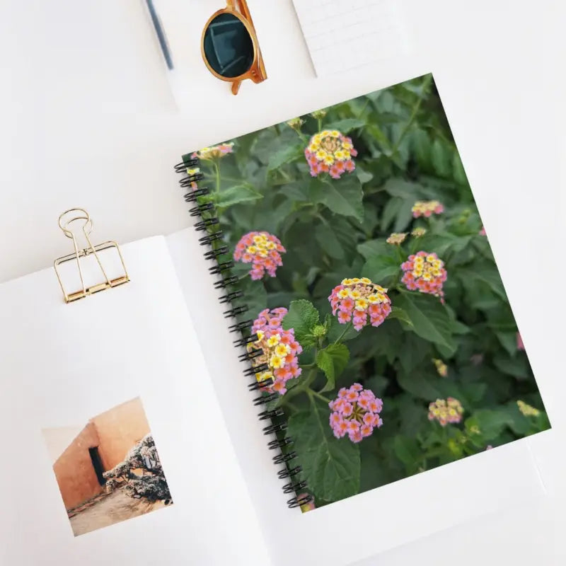 Print: Enjoy a stunning display of vibrant lantana flowers on a smooth cover that perfectly complements every ruled line page with creativity always!!