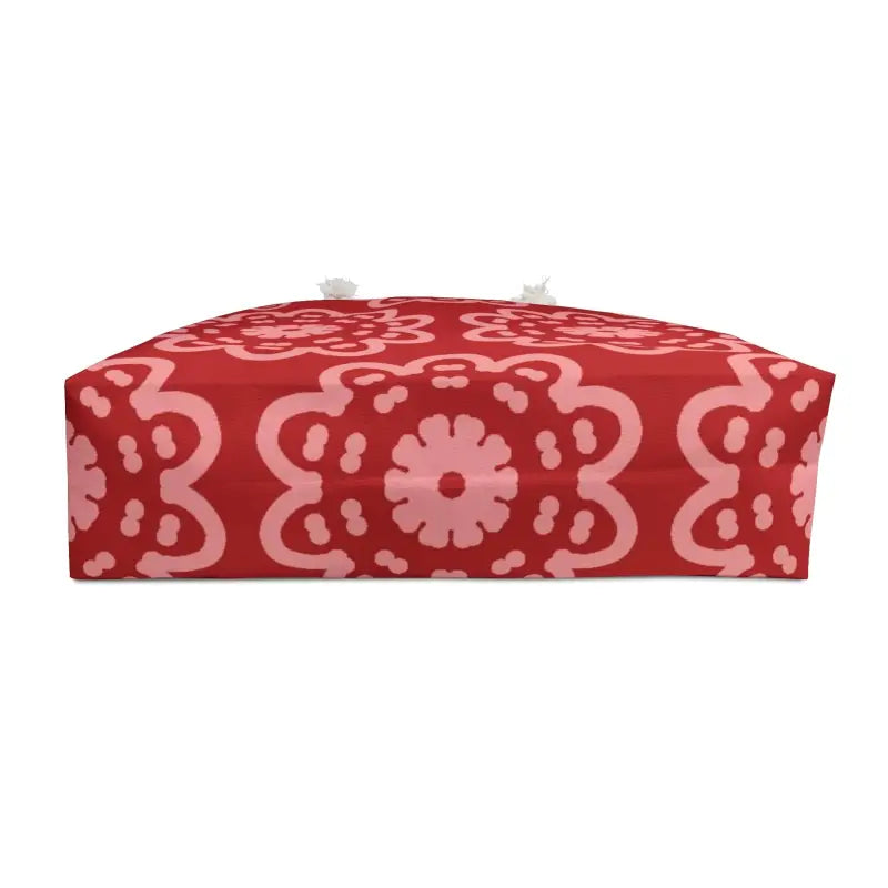 Drift into weekend freedom with this oversized polyester weekender that feels as light as a sea breeze and carries everything from sunscreen to your favorite reads. Picture a vibrant red weekender bag blooming with large flowers in scarlet and fuchsia—your new go-anywhere companion for spontaneous escapes.