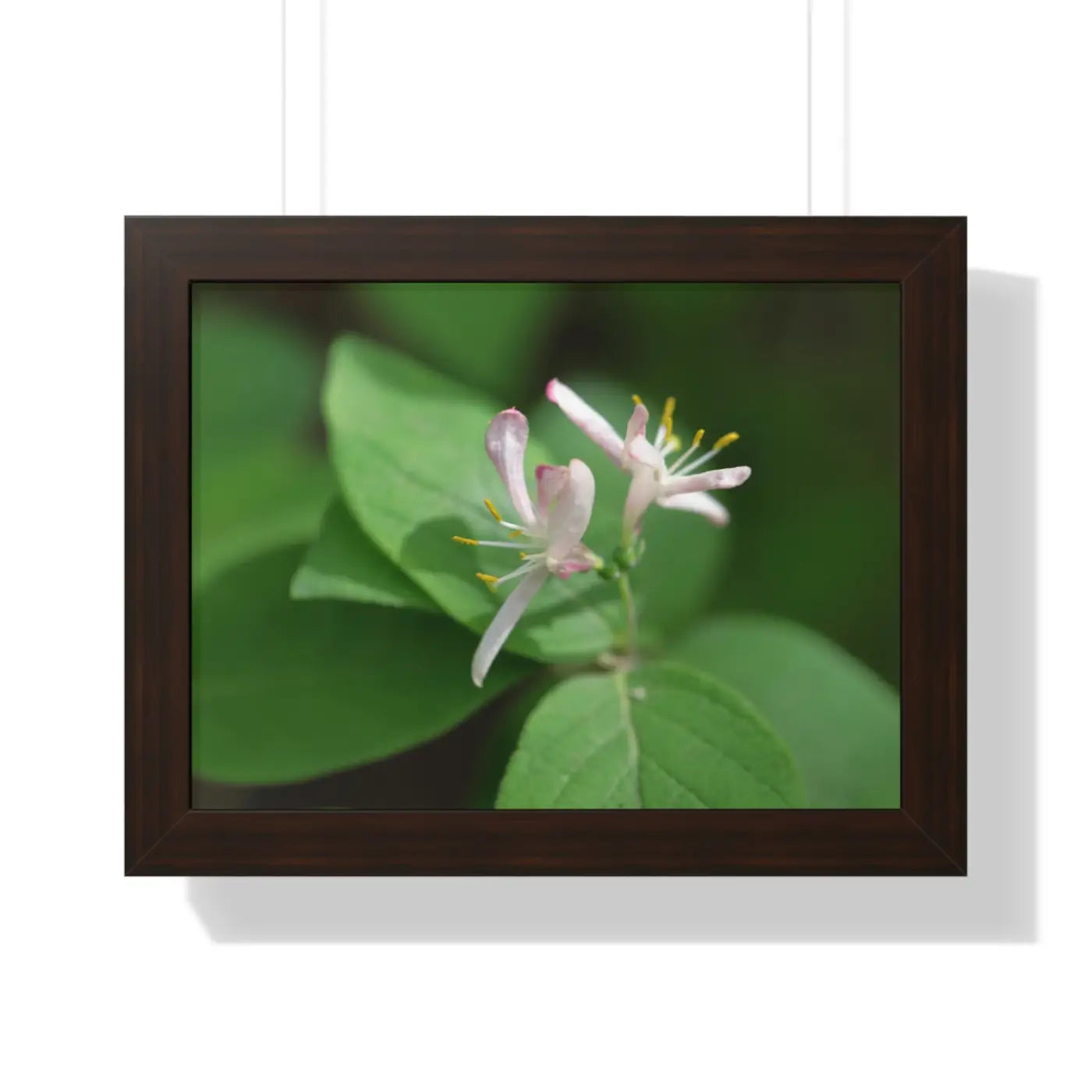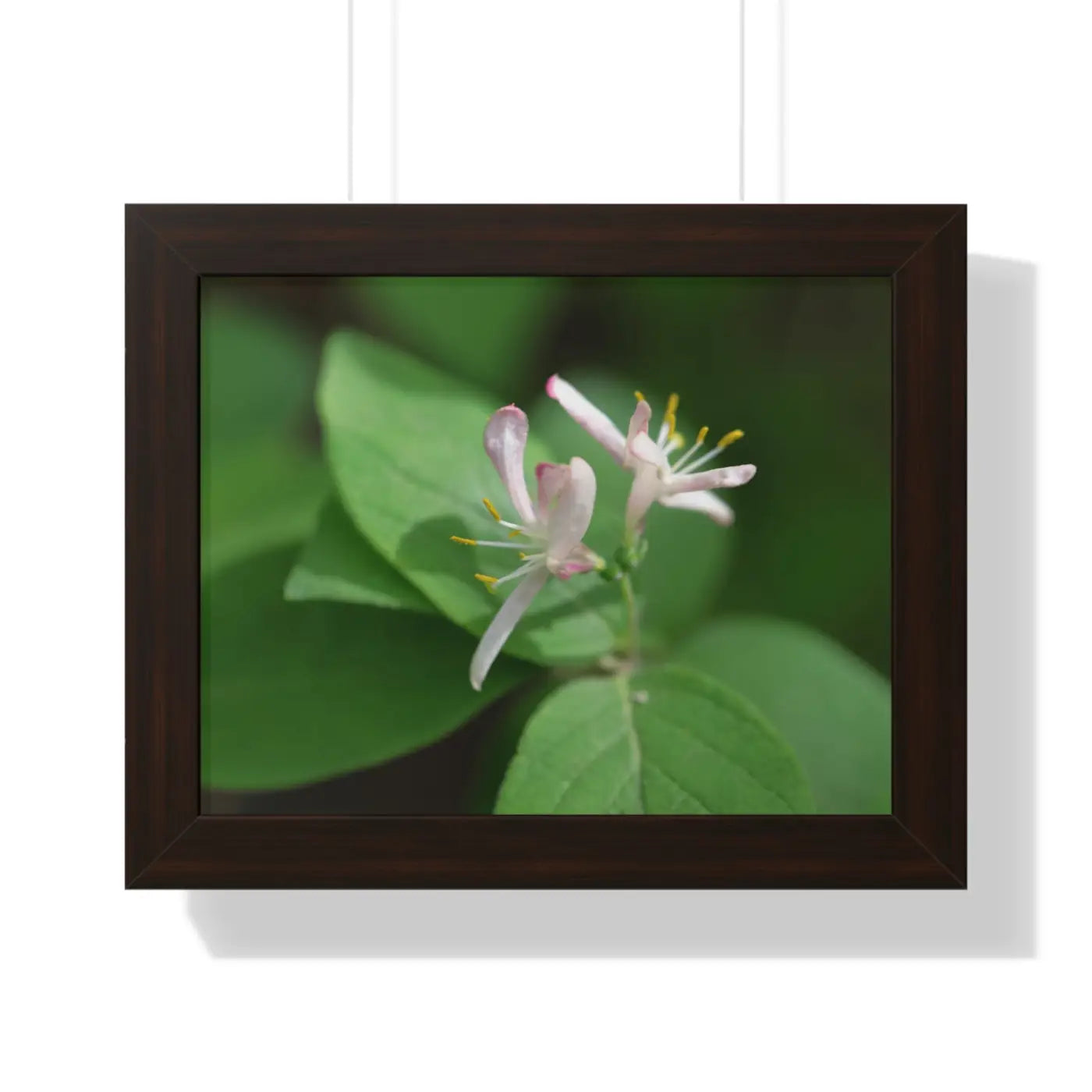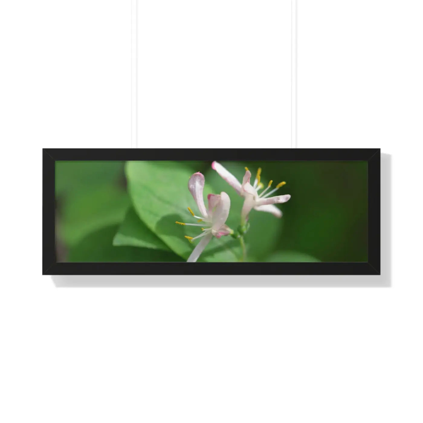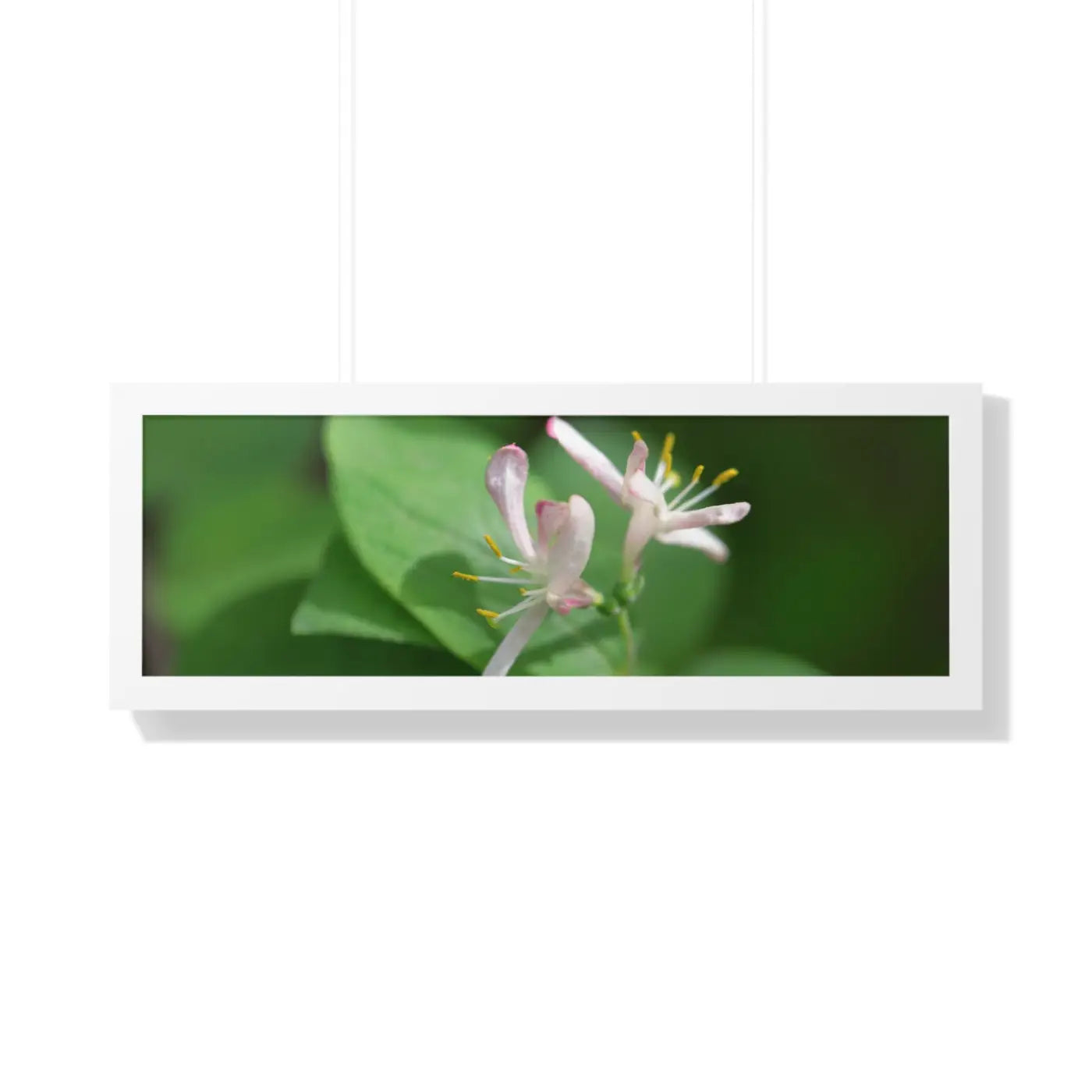 Lonicera, white flowers, Honeysuckle, Framed Horizontal Poster. Available in seven sizes and three framing colors, these archive-worthy ink and photo paper with basil and Sun died tomatoes enrich the place where they are showcased. A premium hardware inclusion on the backside guarantees clean hanging; making sure that the premium horizontal poster’s design comes across as it should. The framing is made of MDF - a move pointing toward ecological friendliness.