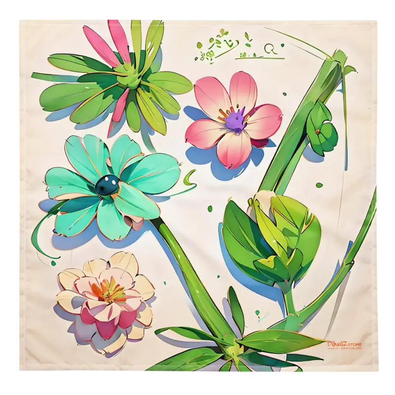 Print: An eye-catching single-sided design showcasing vibrant lovely flowers with a clean nature pattern bandana finish that adds instant charm.