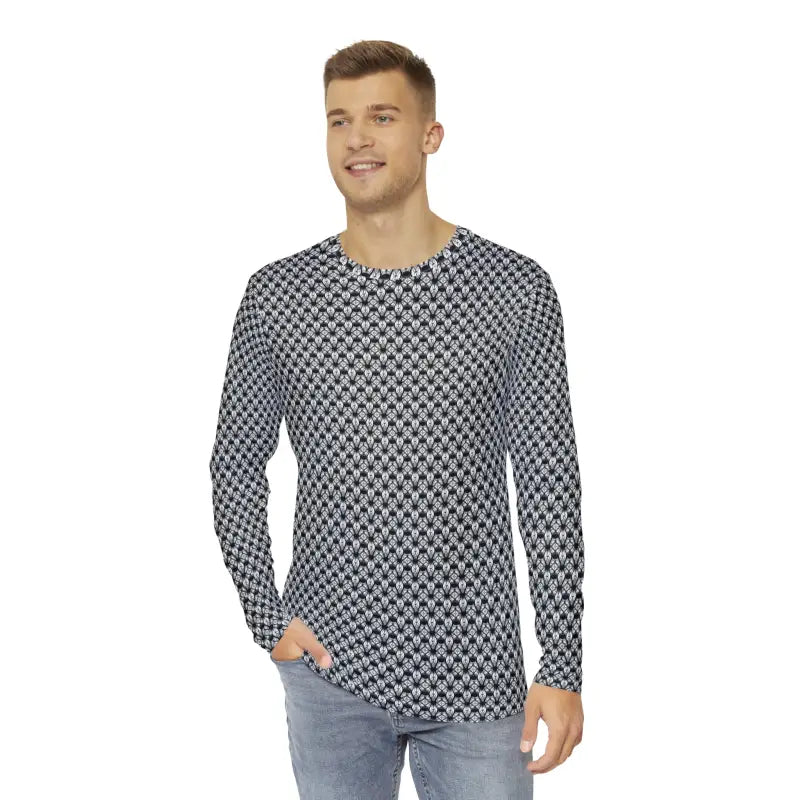 Long Sleeve AOP Tee Monochrome Geometric Pattern Style - DipaliZ