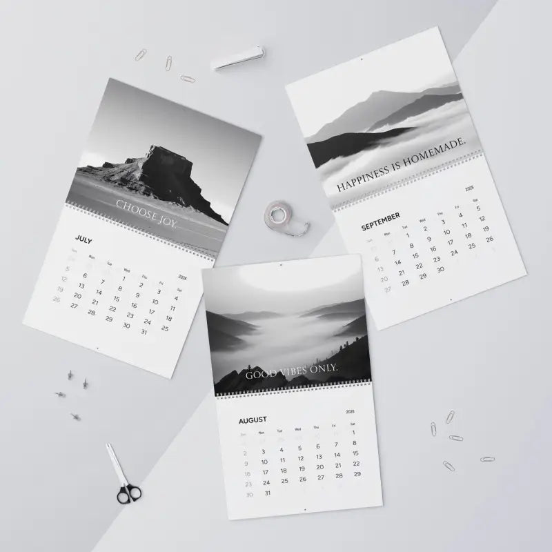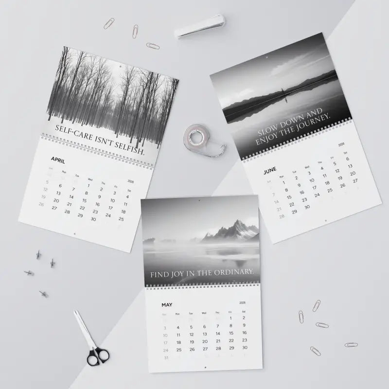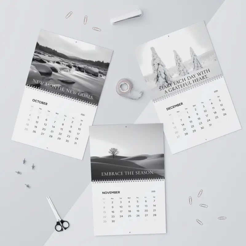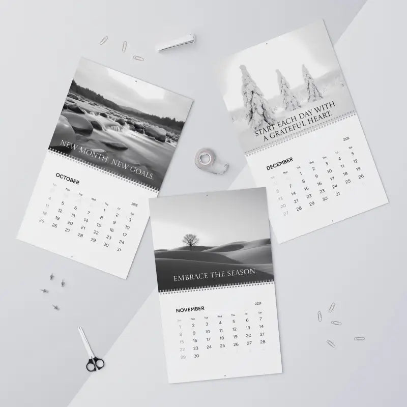 Nature Calendar 2026 - Monochrome Wall Calendar - DipaliZ