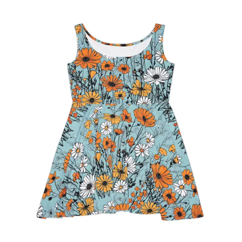 Orange and white flowers pattern, Women's Skater Dress (AOP). Looking for a stylish and comfortable dress that is perfect for any occasion? Look no further than DipaliZ, the skater dress that brings unmatched flair to any woman's wardrobe. Made with a comfortable, stretchy 290gsm fabric blend of 83% polyester and 17% spandex, it's perfect for hitting the town or lounging around. Upgrade your wardrobe today with DipaliZ!