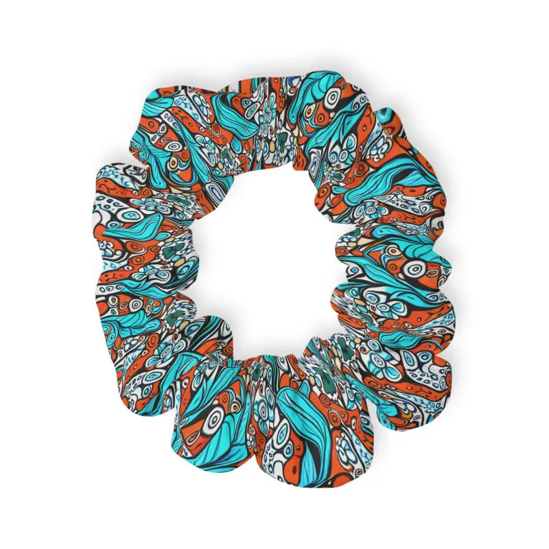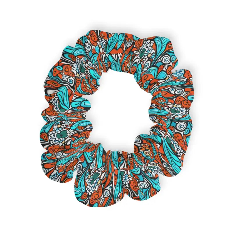 Paisley orange and blue, Stylish Hair Accessories, Scrunchie. Discover the ultimate comfort and style with our custom scrunchies by DipaliZ. Made from luxurious jersey-knit fabric, each scrunchie offers a gentle touch and a secure fit. Embrace the softness and stretchiness that comes with added elastic, making these scrunchies your perfect hair accessory choice.