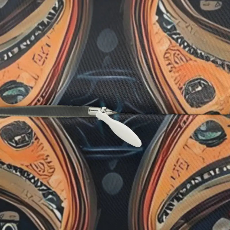 Yes, it features a concealed beige plastic zipper with a metal head, maintaining a stylish and finished look.