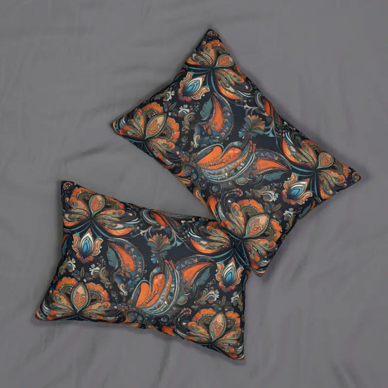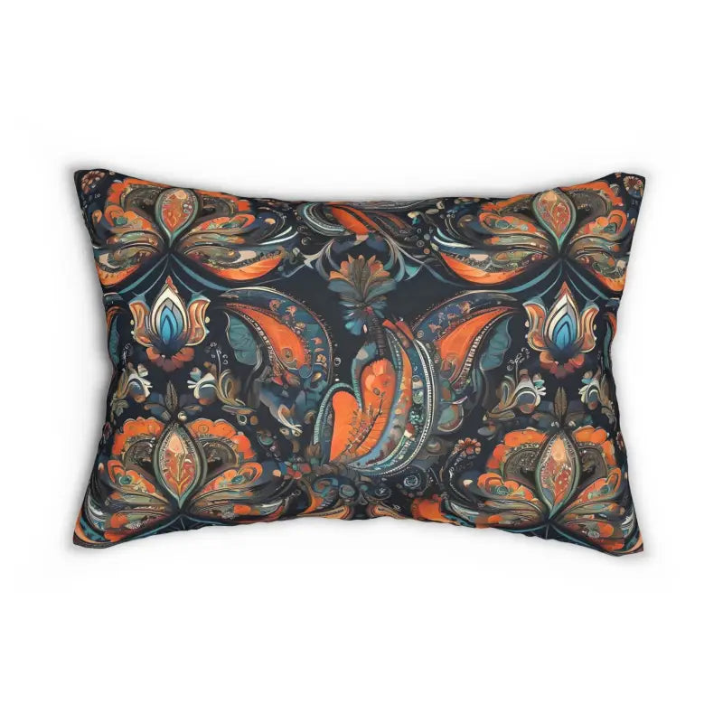Paisley pattern, Spun Polyester Lumbar Pillow. Add this beautiful spun-polyester lumbar pillow to your home decor pieces today. It comes with a stuffing pillow included. The casing is made of a spun polyester fabric that is inherently mildew and water-resistant. You can place your design on both sides or have a different design on each side. It has a hidden beige zipper to maintain a finished and stylish look.