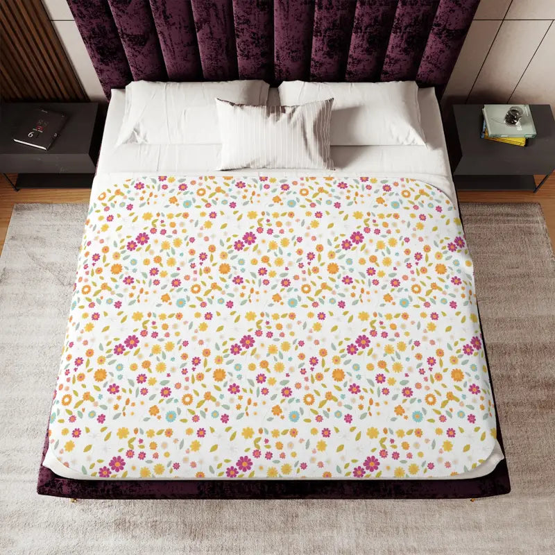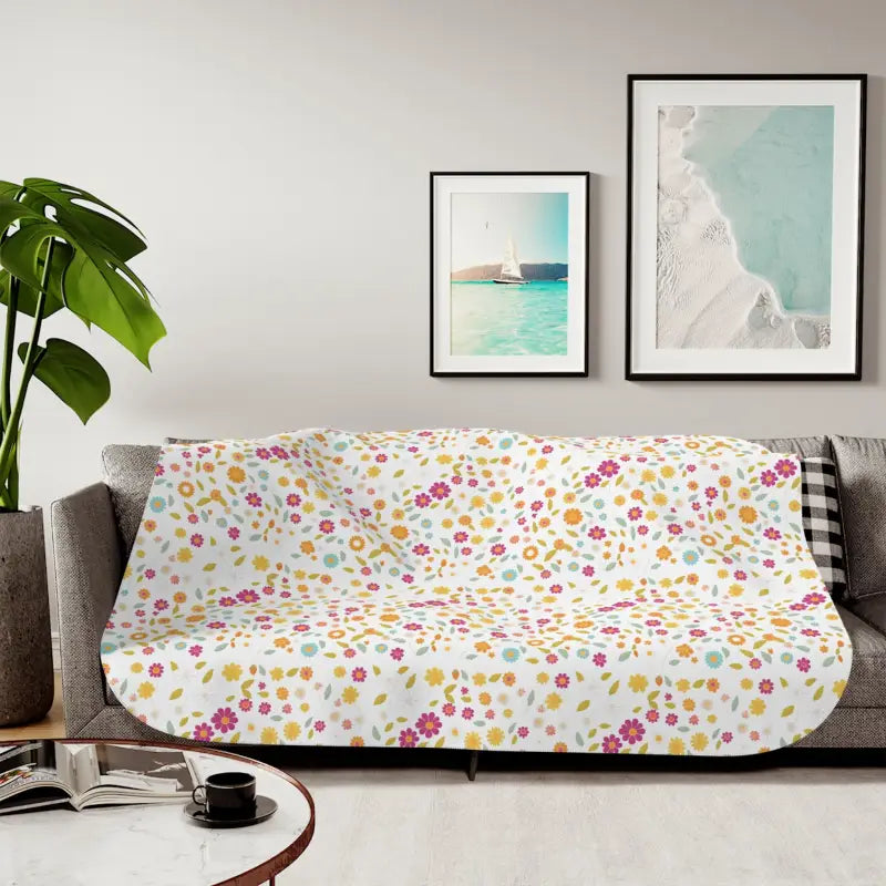 Small Flower Sherpa Blanket - Ultra Soft Cozy Throw - DipaliZ