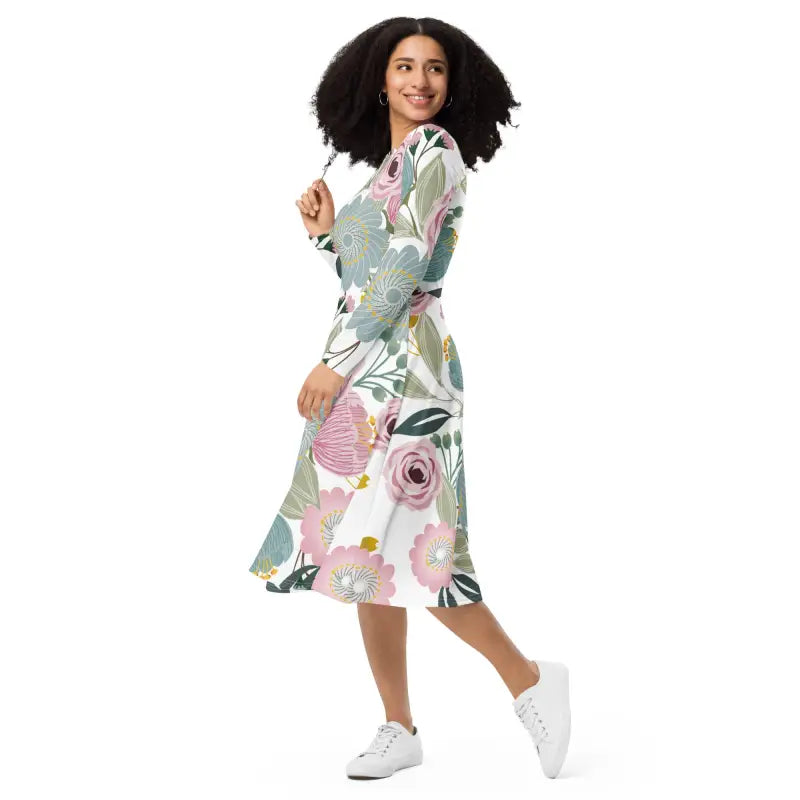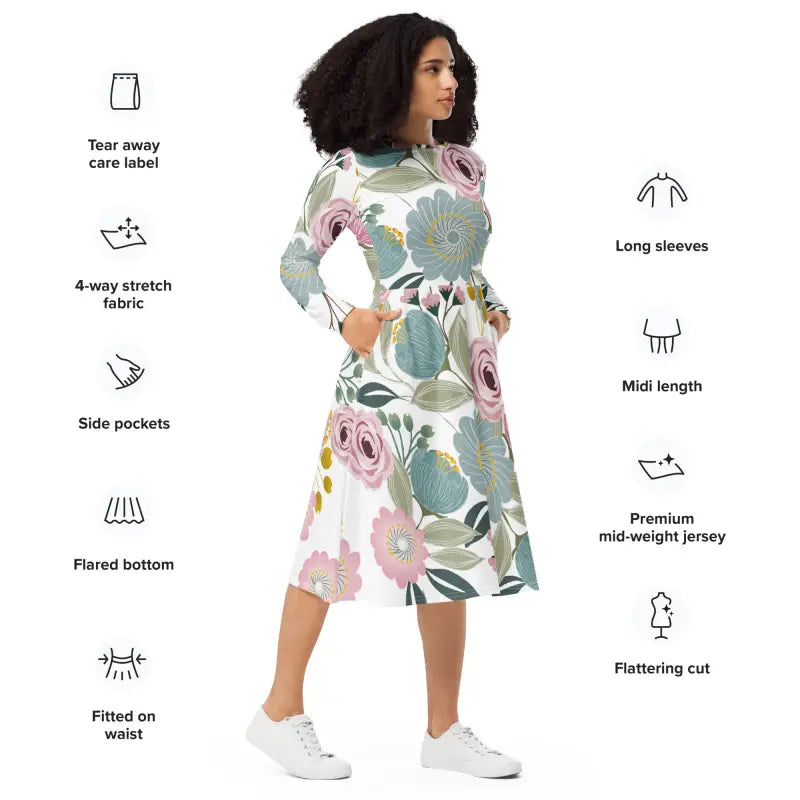 Imagine yourself stepping into a world where every movement reflects grace and confidence. Our Floral Long Sleeve Midi Dress is more than attire—it's an experience. A chance to celebrate spring's arrival with style that feels as good as it looks. Don’t miss the opportunity to own a must-have piece that will redefine your seasonal wardrobe. Add this magnificent dress to your collection today and enjoy the joy of blossoming beauty!